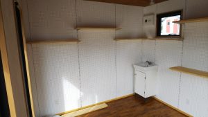 壁はホワイトの有孔ボードを採用。